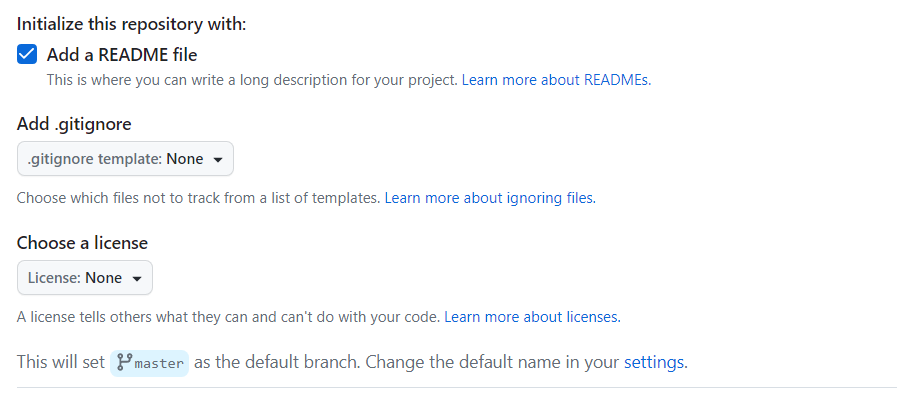 很关键一个问题,在开始新建仓库时,如果勾选了add a readme file,记得把下面的默认分支改成master,不然默认是main分支